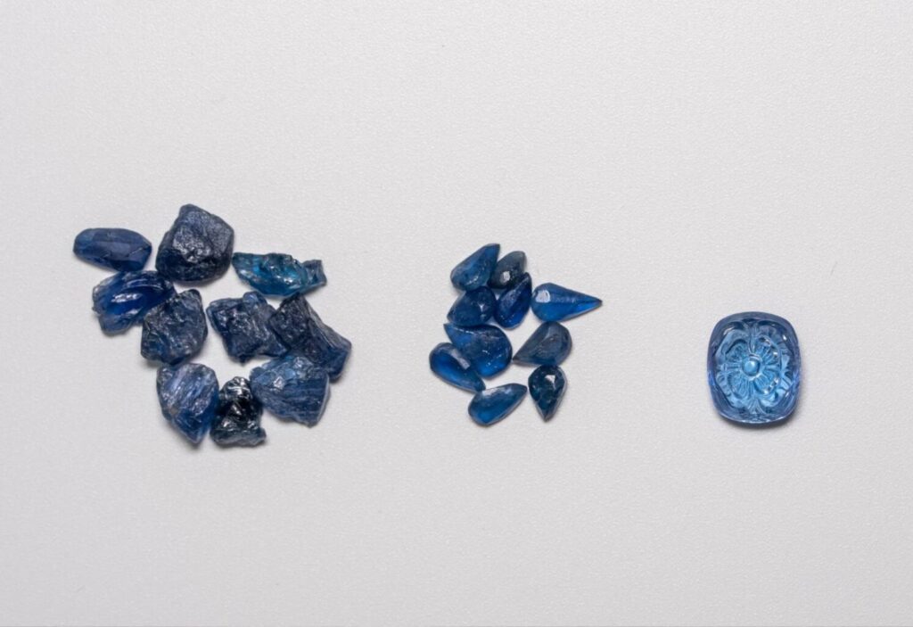 Each rough stone is carefully inspected for quality, size, and natural characteristics, followed by precise planning to determine the ideal cut, shape, and size that enhance its natural beauty and value.
