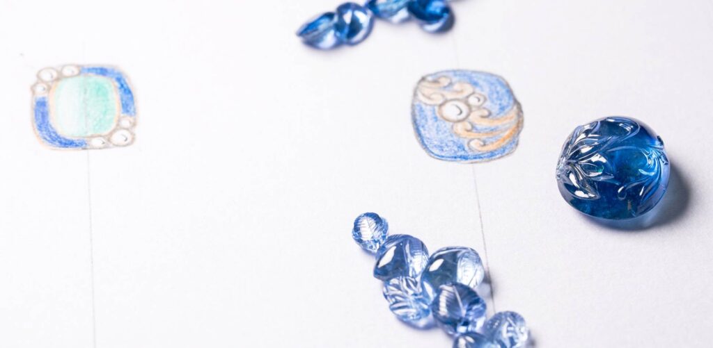 Each stone is first inspected for inclusions, with a design planned to highlight its shape while integrating natural flaws into the motif. The chosen design is carefully marked, and the stone secured for precision. Carving begins with defining the basic outline, followed by fine detailing to bring out smooth lines and intricate patterns. Inclusions are skillfully woven into the design, turning imperfections into features.